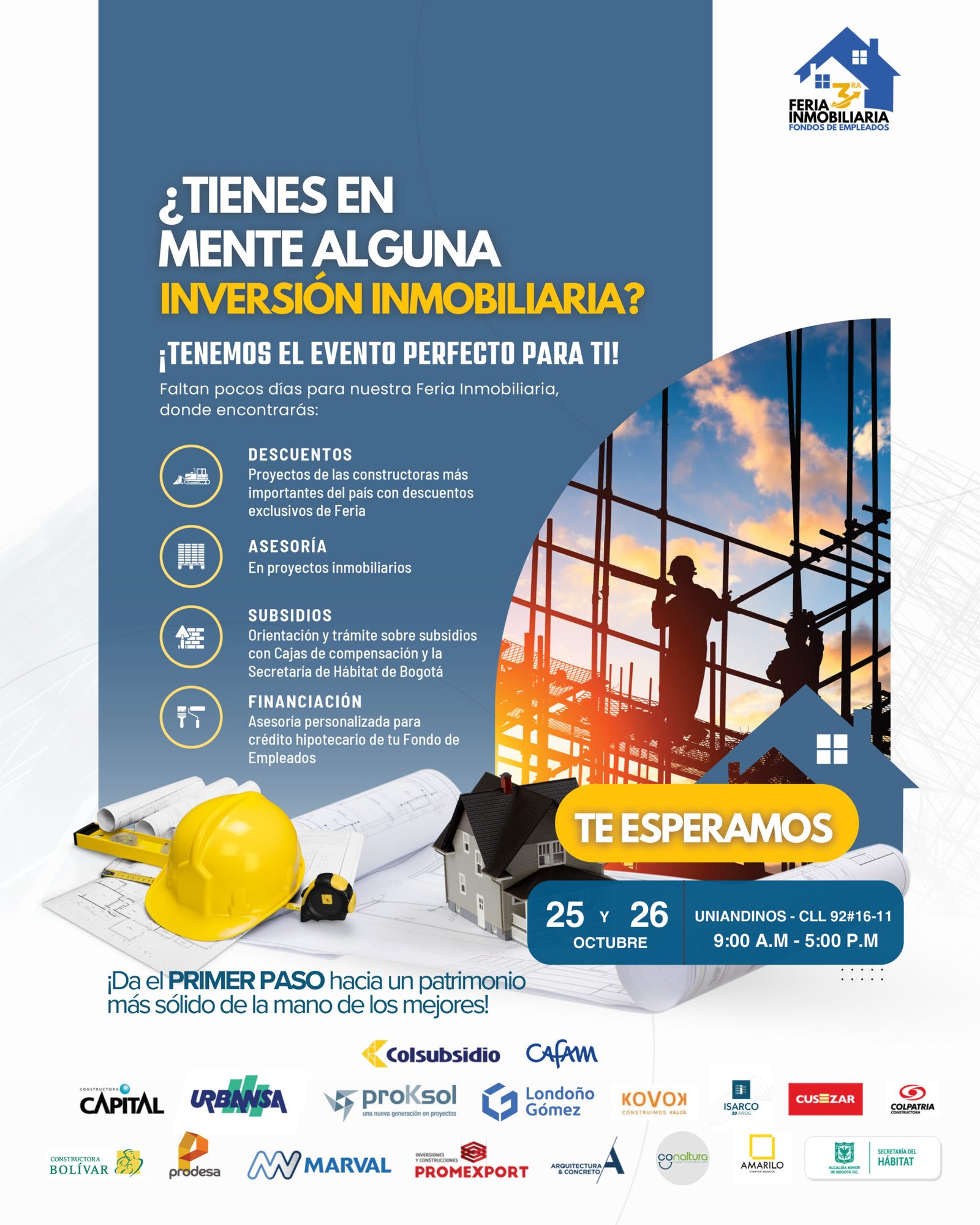 Bienvenidos a la Feria Inmobiliaria Fondista, un espacio creado para acercar a los asociados y sus familias a una amplia oferta de proyectos inmobiliarios y opciones de financiación con condiciones preferenciales.